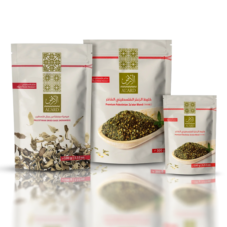 Elevate your dishes with our premium range of Palestinian spices and herbs, crafted for authentic, everyday home cooking. This rich collection features handpicked Palestinian herbs like thyme and sage, along with traditional blends such as Palestinian spice mix zaatar and our signature dukkah, made from roasted wheat, sesame, and aromatic herbs and spices.